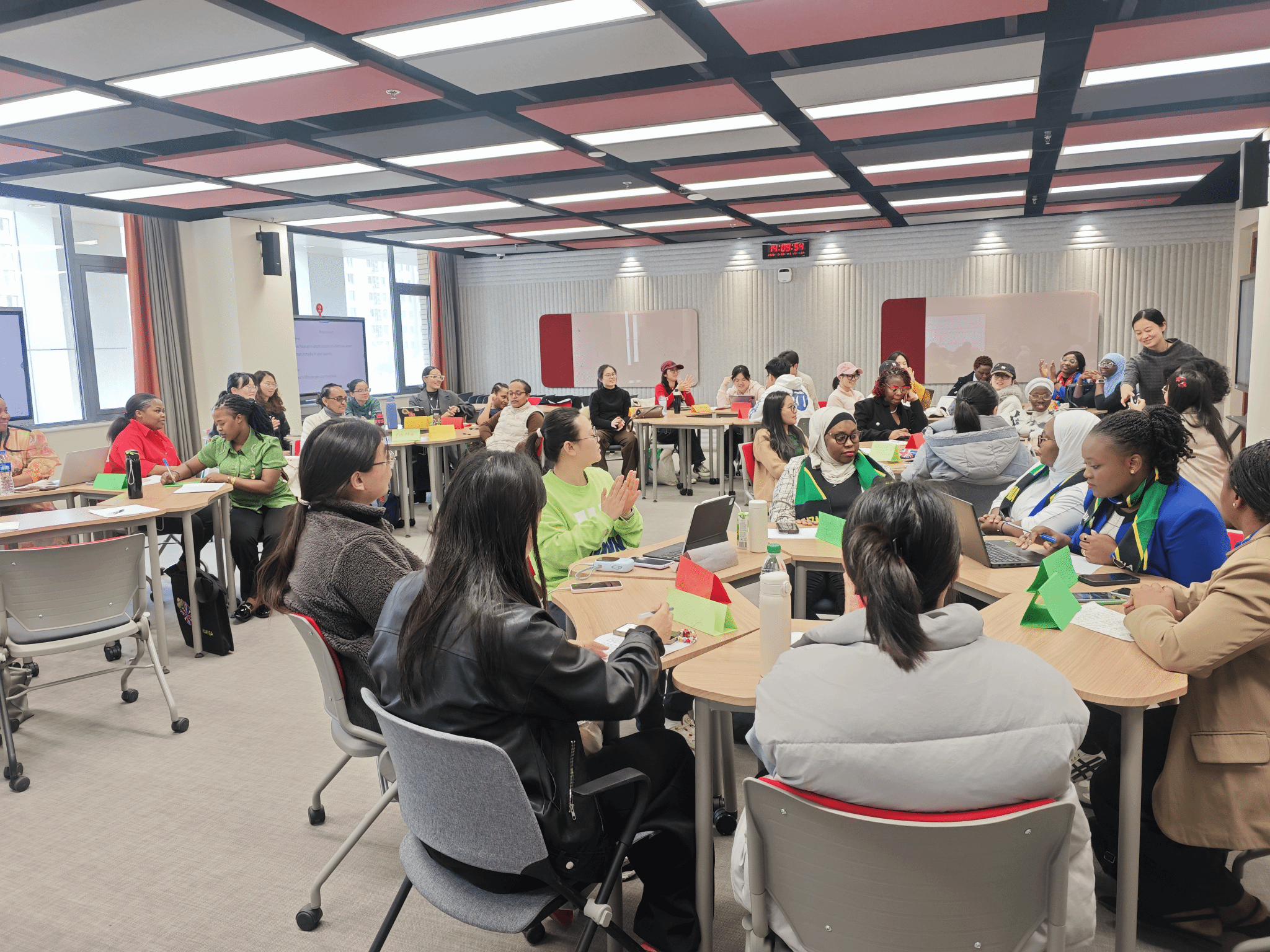 2026年3月20日下午,我校社会工作专业妇女发展方向硕士生与援外学历学位教育项目国际硕士生开展学术对话活动。来自中国、埃塞俄比亚、津巴布韦、塞拉利昂、纳米比亚、坦桑尼亚、布隆迪、柬埔寨、加蓬、利比里亚、卢旺达、缅甸、冈比亚、委内瑞拉等十四个国家的硕士生齐聚一堂,围绕媒介视角下的女性议题展开深度对话与思想碰撞。