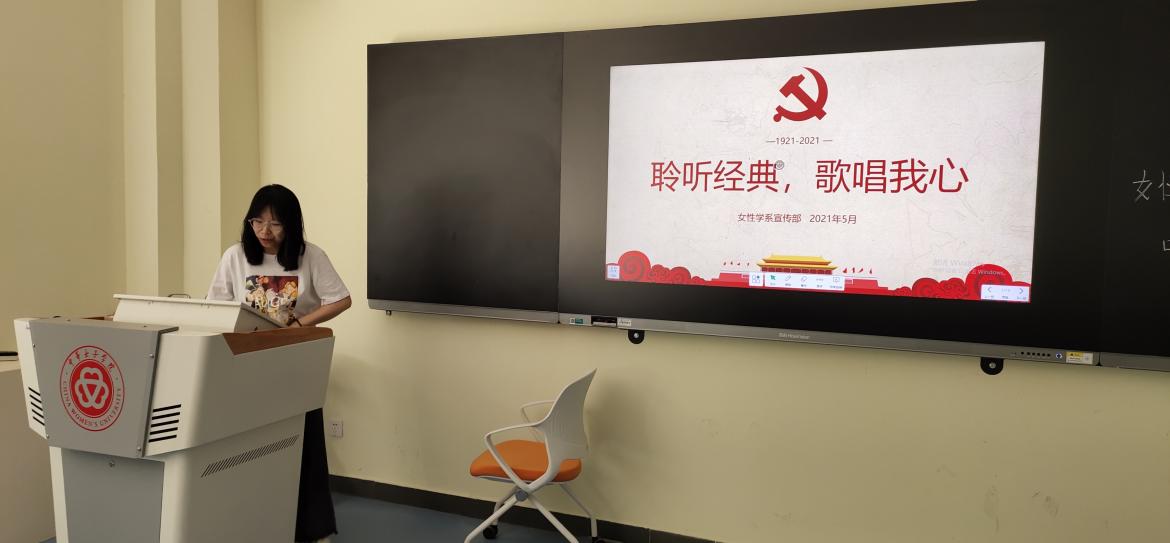 为庆祝建党100周年,2021年5月30日上午,女性学系在主楼138举办“聆听经典,歌唱我心”红歌传唱比赛。旨在重温红色经典,共抒爱国情怀。