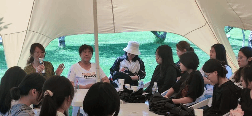 上镇村妇联赵主任、刘书记与师生们进行了座谈。她们为同学们介绍了上镇村的整体情况、乡村振兴的举措、妇女工作的难点痛点、计生工作变迁等具体事项。同学们对基层妇女干部的工作和思想有了直接的了解,感受到老龄化背景下农村邻里互助的养老模式、巾帼志愿者服务队等助老方式势在必行,并进一步反思理论与实践的关系。