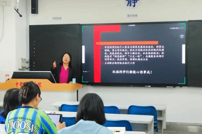 丁老师首先强调了毕业前修满学分的重要性,提醒同学们及时梳理个人学业情况,确保顺利毕业。随后,她详细介绍了毕业去向的界定和常见就业形式,并鼓励同学们积极就业,不辜负国家、学校和家庭的培养。
