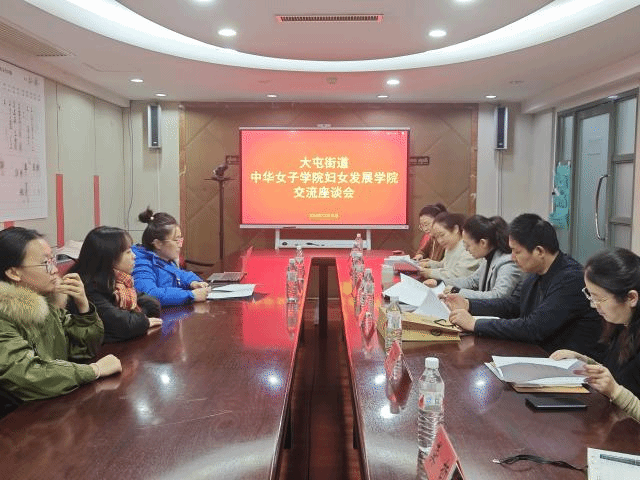 为深入学习贯彻习近平在2024全国教育大会的讲话精神,围绕立德树人根本任务,促进女性学国家一流本科专业人才培养满足社会需要,2024年12月10日下午,中华女子学院妇女发展学院与大屯街道交流座谈会暨实践基地签约仪式在大屯街道办事处成功举行。大屯街道办事处副主任胡颖等工作人员、中华女子学院妇女发展学院副院长朱晓佳、实践教学教研室主任聂真真及学生代表参加了此次座谈会。