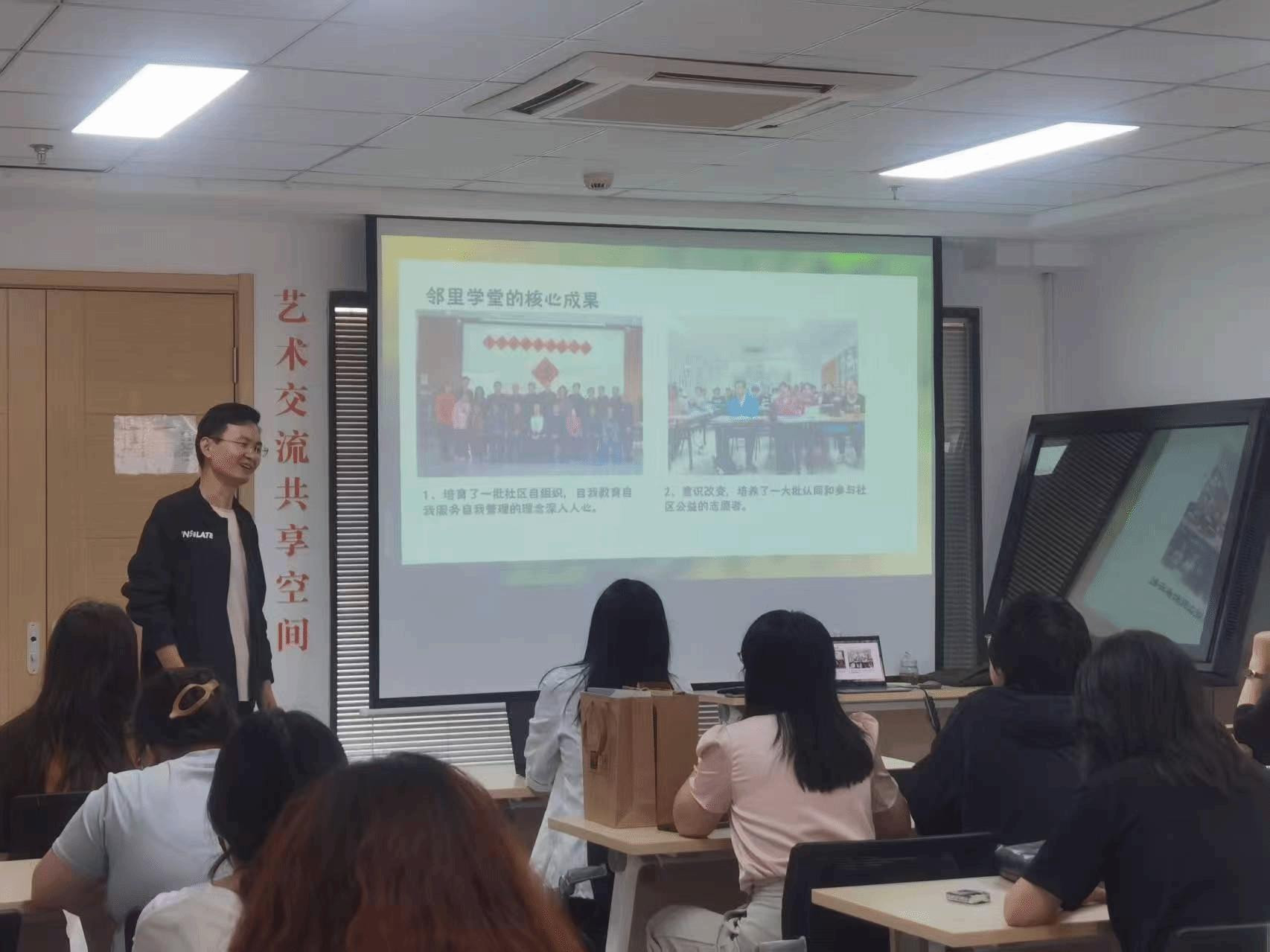 在崔各庄党群服务中心,北京市近邻社会工作发展中心副主任魏儆麟详细介绍了机构的发展现状及“三亲教育”等特色项目。双方就设立专项实习岗位的可行性进行了深入探讨。随后,在学院家智慧养老中心,夕阳再晨社会工作服务中心书记谢乐乐现场展示了智能适老化改造项目。双方进一步探讨了女性学专业在养老领域实现就业突破的可行性。