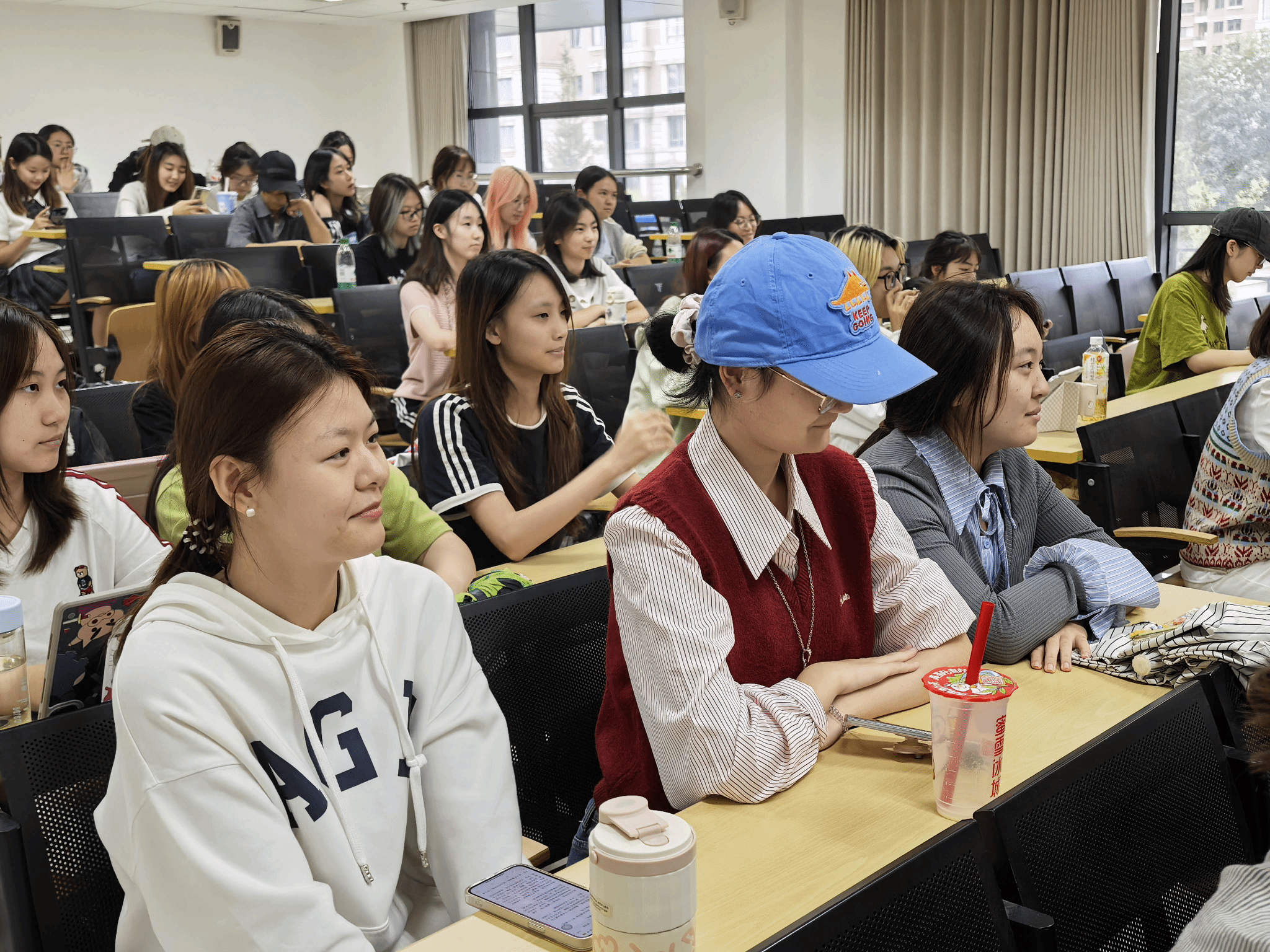 储佳瑶分享了实习生活,以全“优秀”评价展现职场成长;陈仪作为“渭水童行”实践团成员,讲述甘肃陇南支教点滴,从新奇到疲惫再到收获成就感,满是基层服务热忱;黄頔带来新疆支教与妇联实习感悟,与孩子们的互动、严谨的文书工作,尽显实践价值;张宇冰的分享兼具趣味与深度,马来西亚、江西南昌的旅行拓宽视野,参与包头市商圈妇联大会调研,更让大家对妇女工作有了新认知。