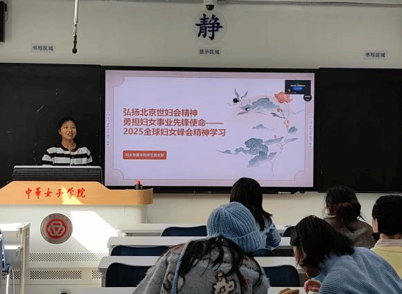 2025年10月31日,妇女发展学院学生党支部以“弘扬北京世妇会精神,勇担妇女事业先锋使命”为主题,组织全体学生党员开展2025全球妇女峰会精神专题学习会。为确保党员同志学习交流的参与率,支部采用线上线下相结合的方式。