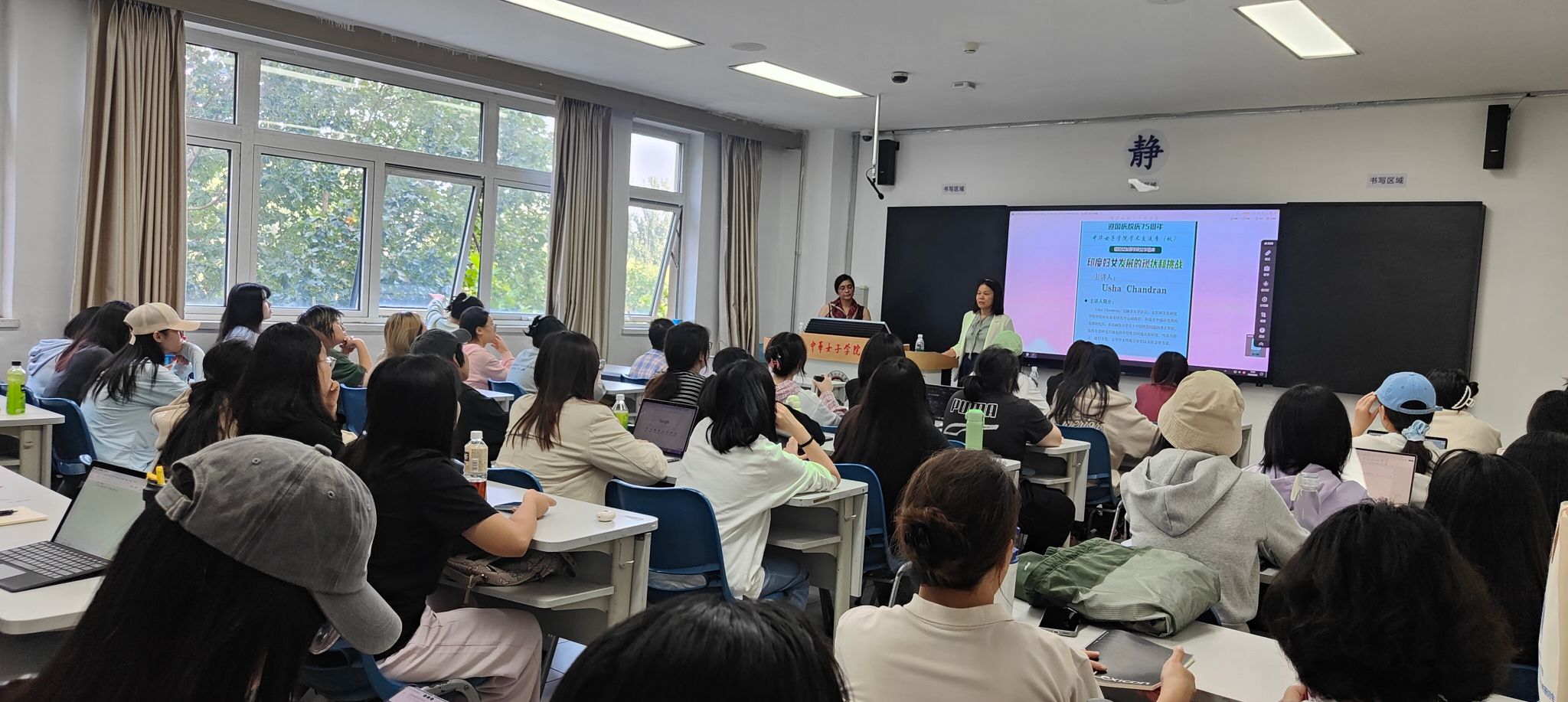 为加强对国际社会女性学研究的掌握,增进与性别研究前沿的对话,妇女发展学院依托女学圆桌品牌,在学校科研处、外事办等部门的支持下,于2024年9月24日下午在主楼350顺利举行了一场有关印度妇女研究的学术交流。来自妇女发展学院、管理学院、文传学院的师生与印度尼赫鲁大学的副教授Usha Chandran共同探讨中印妇女发展。