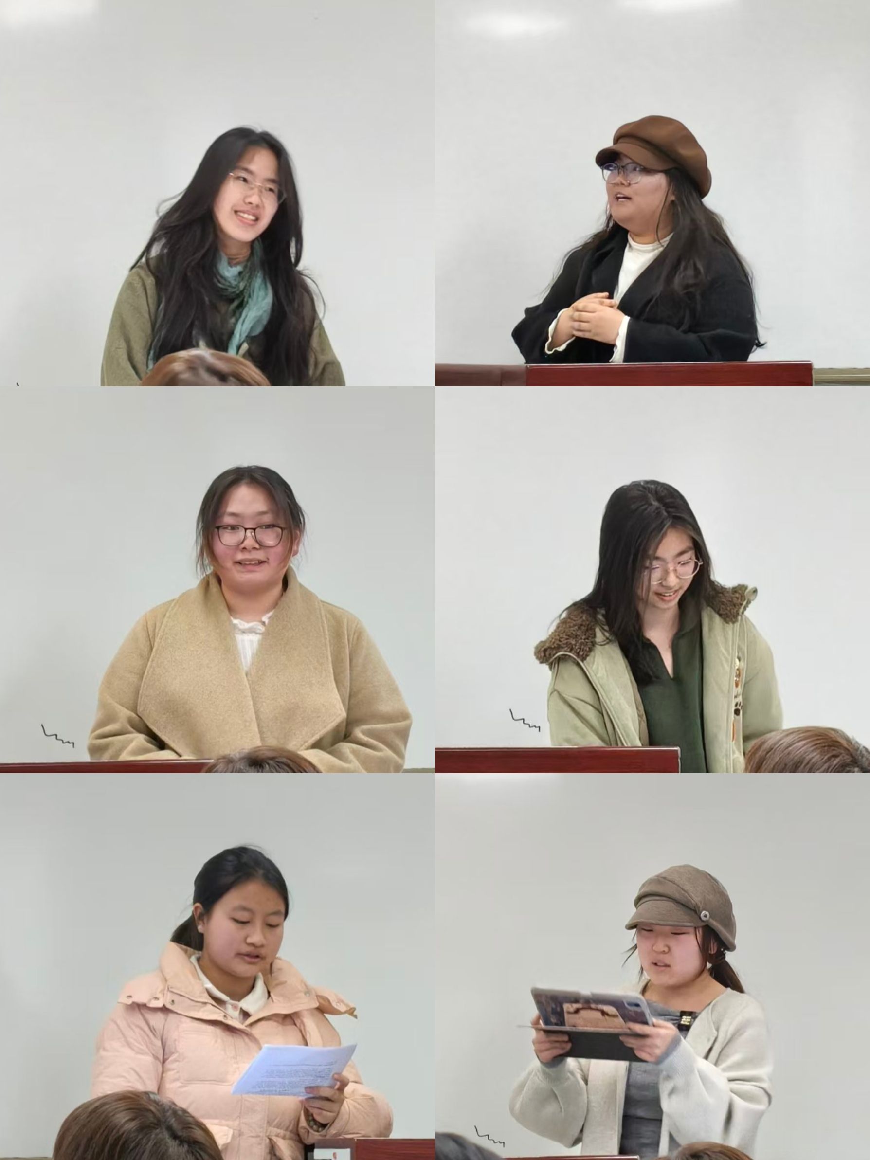 在分享环节,六位同学围绕“微光”与“回声”的主题,从专业认同、社会实践、校园温情、成长蜕变、价值传递、新学期规划等角度,讲述了寒假期间的体悟与新学期的思考。既有田野调查的实践印记,也有宣讲使命的责任担当;既有同窗互助的温暖瞬间,也有从迷茫到走向坚定的成长心路。多元的分享勾勒出学生思想向上、路径多元的成长图景。
