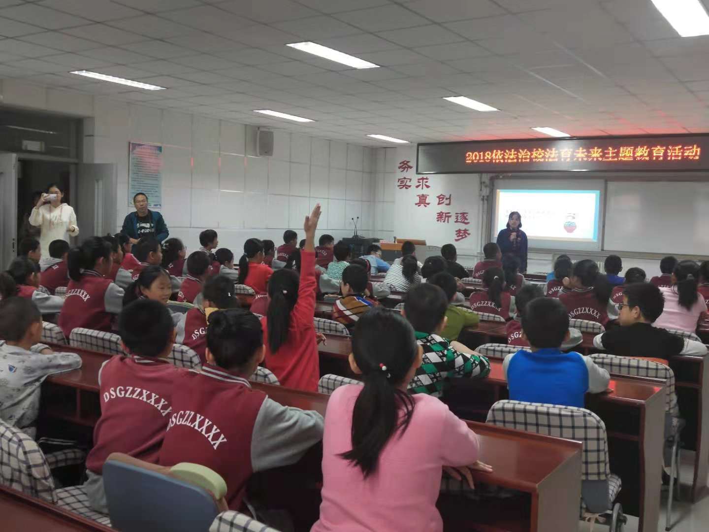 2018年10月15日下午,我院学生党支部学生党员在大孙各庄小学大会议室开展了面向该校五年级学生主题为“以爱之名,共护成长”的普法宣传活动。此次普法活动,两位主讲人员先由几个经典的未成年人保护和未成年人犯罪案例引入主题,主要从未成年学生预防校园暴力、未成年人预防性侵害,日常生活的自我保护常识这三个方面展开,详细介绍了未成年人在遇到侵害时的自我保护措施。此次普法宣传受到了老师和同学们的一致好评。