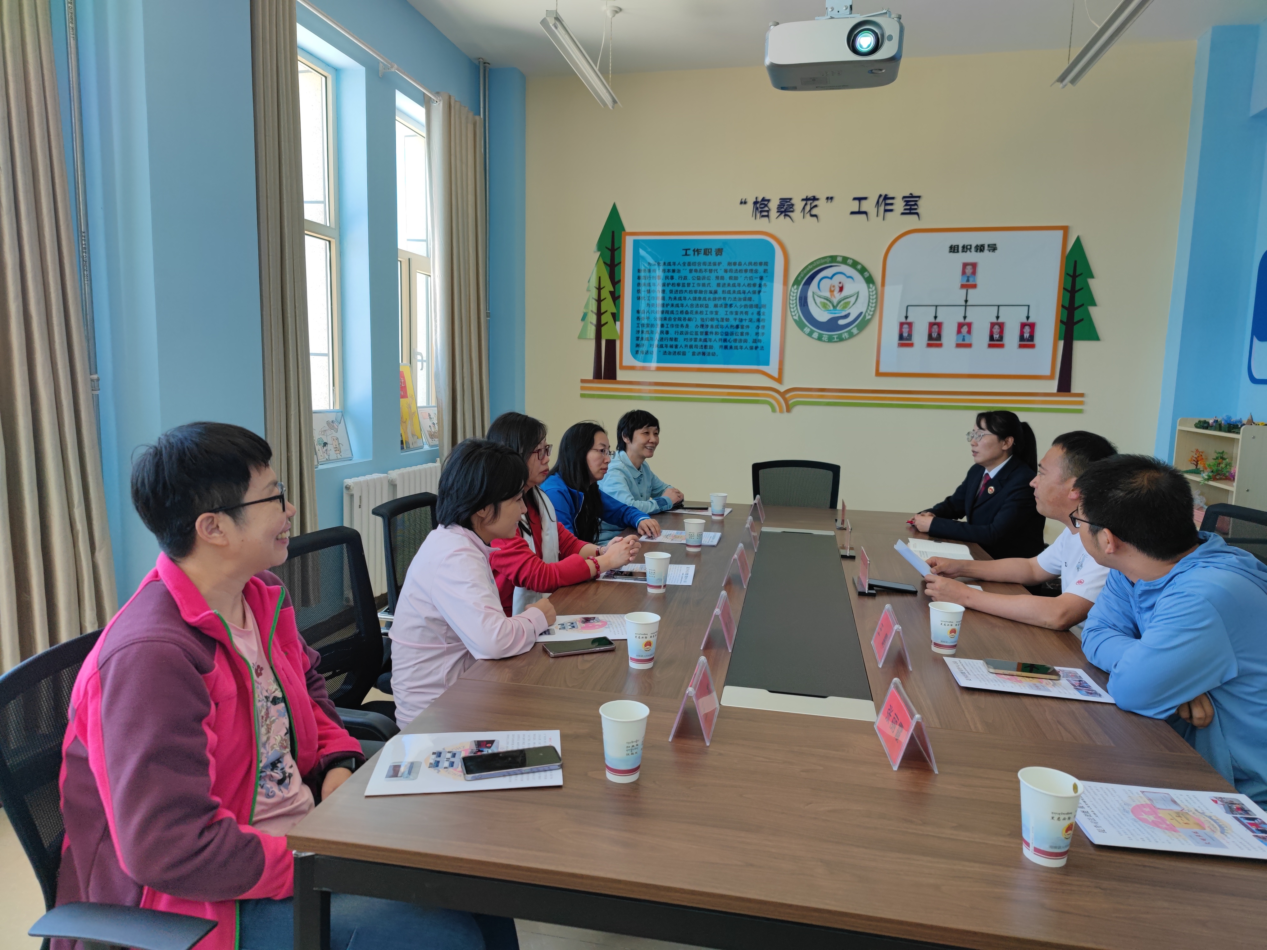 7月24日上午,调研组一行到达海北州刚察县人民检察院,刚察县人民检察院党组书记李春辉,党组成员、副检察长叶丹加等接待了调研组一行,调研组参观了刚察县格桑花未检工作室。刚察县人民检察院一部负责人王晓婷介绍了刚察县未成年人保护和妇女权益保护公益诉讼的情况。调研组与刚察县检察官对藏族女童的保护问题进行了深入研讨。