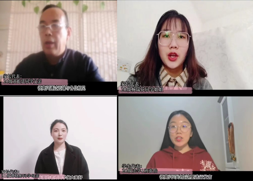 奏唱国歌之后,法学院全体师生共同观看视频。重温2022,师生勠力同心、奋楫笃行、踔厉奋发,在共克时艰、同心抗疫的前提下,法学院开展了多姿多彩的课外活动,同学们在各项比赛中取得了优异的成绩,为自己的大学生活添上浓墨重彩的一笔。寒假期间老师们与律所、检察院签订合作协议,为今后同学们的实习工作提供更多选择;同学们有人学习技能完善自我,有人游历山水开拓视野。三年疫情终过去,众志成城再启程,三位家长代表及学生代表为全体师生送上开学寄语,祝愿法学院师生在新学期携手前行,点燃梦想,共赴星辰大海。
