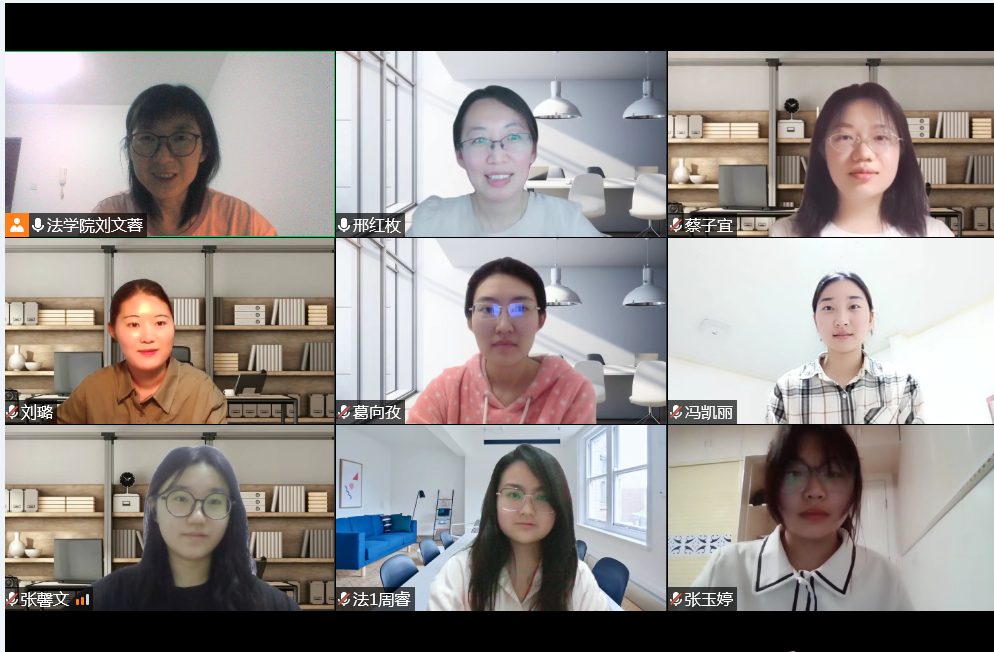 为了表达对抗疫志愿者的敬意,贯彻“三全”育人,法学院近日组织开展慰问抗疫家长志愿者、学生志愿者活动。2022年4月24日、25日晚,法学院党总支书记、班主任、辅导员通过腾讯会议与本年度的抗疫家长志愿者(2020级黄屹廷同学父母)、学生志愿者(2019级蔡子宜、周睿,2020级冯凯丽、张玉婷、张馨文)进行了座谈,了解他们的志愿工作内容,聆听他们参与志愿活动的感受。