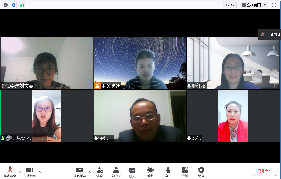 黄屹廷父母并非医务工作者和社区工作人员,是以普通居民志愿者的身份积极参与到河北省抗疫活动中,以实际行动为孩子做榜样。老师们代表法学院对家长志愿者表达感谢,由衷赞赏他们对孩子积极的言传身教。学生志愿者分布在贵州、河南等地,主要工作是协助社区做核酸。老师们对学生志愿者的志愿精神和志愿行为给予充分肯定,嘱咐他们做好个人防护,协调好志愿实践与专业学习,鼓励她们记录抗疫时刻与同学分享。
