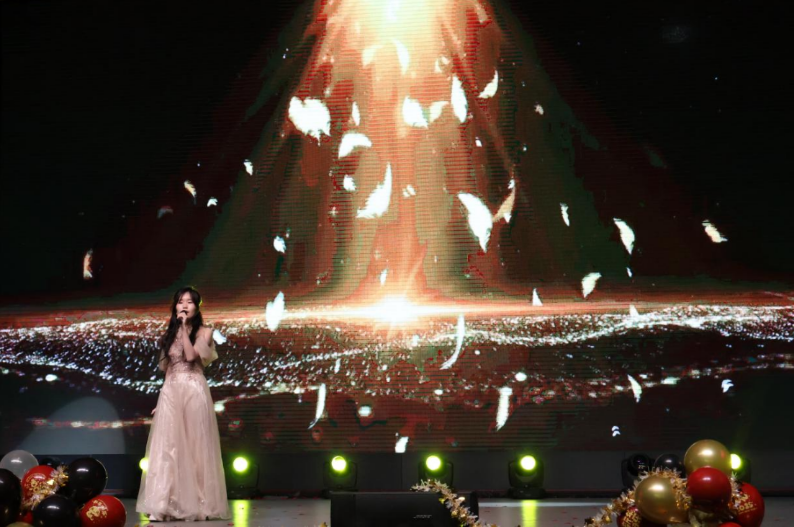爱与希望交织成最美的旋律,成为我们共同记忆中永不褪色的篇章。在温馨的聚光灯下,法学院教师献唱演绎经典曲目《童年》,唤醒了每个人内心深处那份纯粹而真挚的快乐。正如开在荆棘丛中的花,即使面对困境依然坚韧生长、向外绽放。联欢会的最后,小红花芝士团师生共同演唱歌曲《送你一朵小红花》,传递着生命的顽强与不屈,更将无尽的温暖与希望播撒心田。