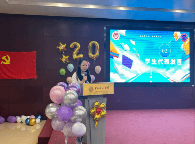 欢送会的最后,教师党员以及毕业生党员在党旗前高举右拳、庄严宣誓。通过重温入党誓词,深刻铭记初心使命、恪守承诺,以实际行动淬炼担当本色。随后,全场师生共同起立,齐声唱响中华女子学院校歌,悠扬而激昂的旋律为本次欢送会画上了圆满的句号。