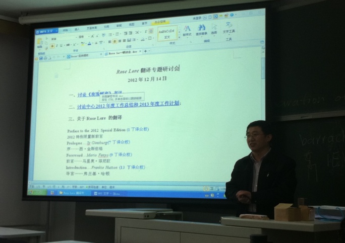 2012年12月,翻译研究中心举行学术著作《玫瑰解密》翻译专题研讨会。