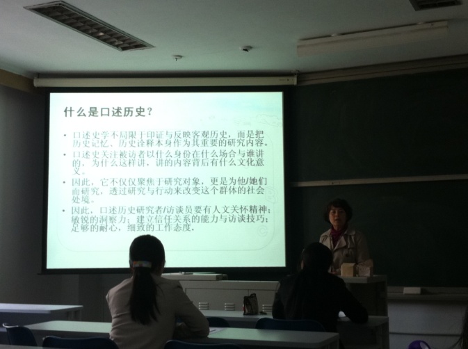 2012年10月,女性图书馆馆长李洪涛教授向翻译研究中心成员介绍妇女口述史项目,并提出合作展望。