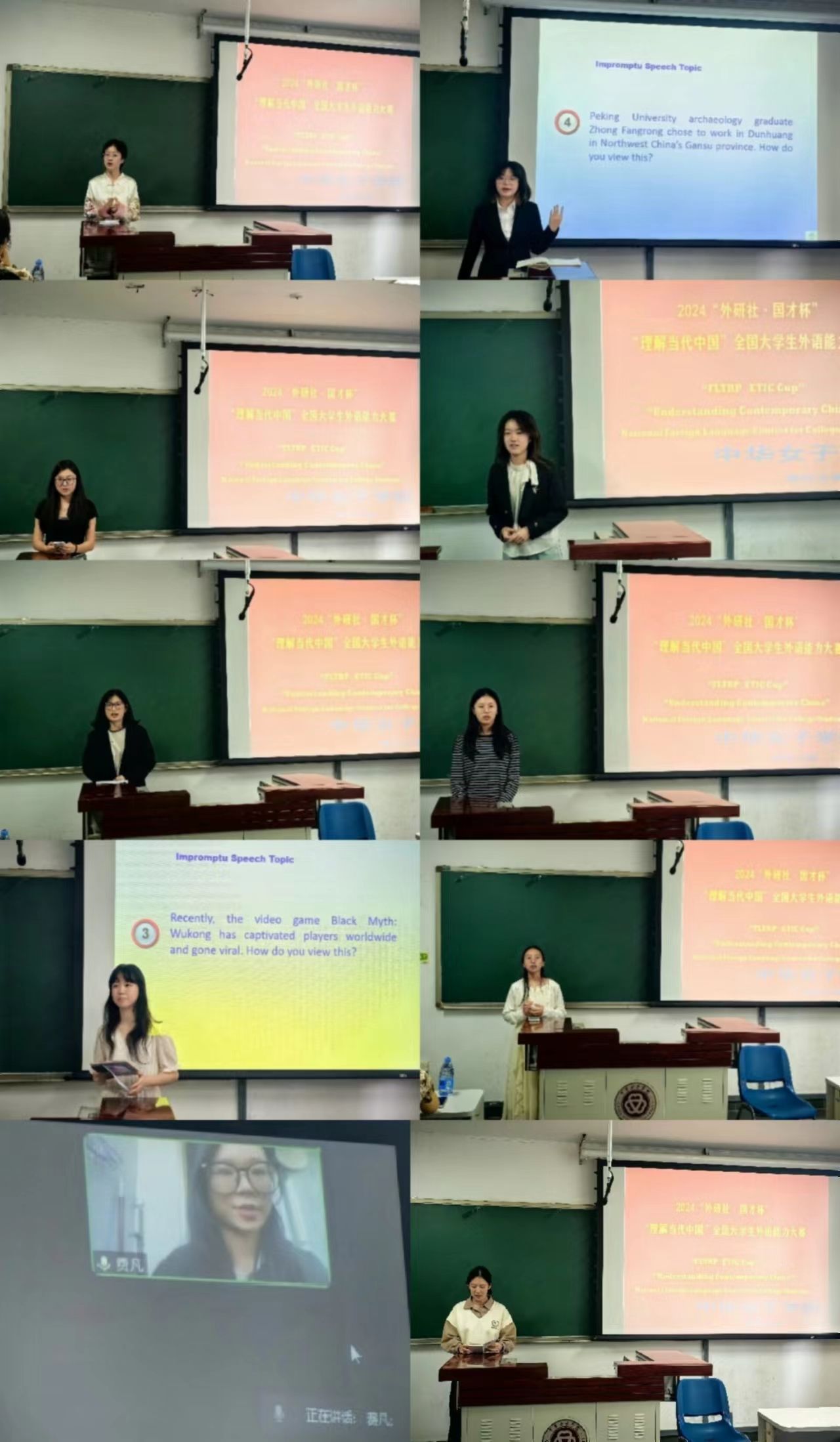在喜迎建国七十五周年之际,为进一步激发广大同学爱党爱国热情,搭建理解当代中国、沟通世界的桥梁,增进英语学习动力,校团委与国际教育学院于9月24日在主楼408教室举行2024中华女子学院英语演讲比赛决赛。比赛围绕“中国龙福泽四海(The Chinese Dragon is Good)”这一主题,分初赛和决赛两个阶段进行。经严格选拔,10名参赛选手在初赛中脱颖而出,晋级决赛,通过3分钟已备演讲和2分钟即兴演讲两个环节,进行风采展示和奖项角逐。本着规范、公开、公正、公平的原则,决赛最终评出特等奖与一、二、三等奖。
