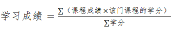第七条 学习成绩指本专业本学年应修课程成绩(含开设的思政、美育、劳育、体育等各类课程成绩)的加权平均值,基础分值为60分。计算方法为学年各门成绩乘以该门课程学分的总和,除以总学分,然后乘以60%,即: