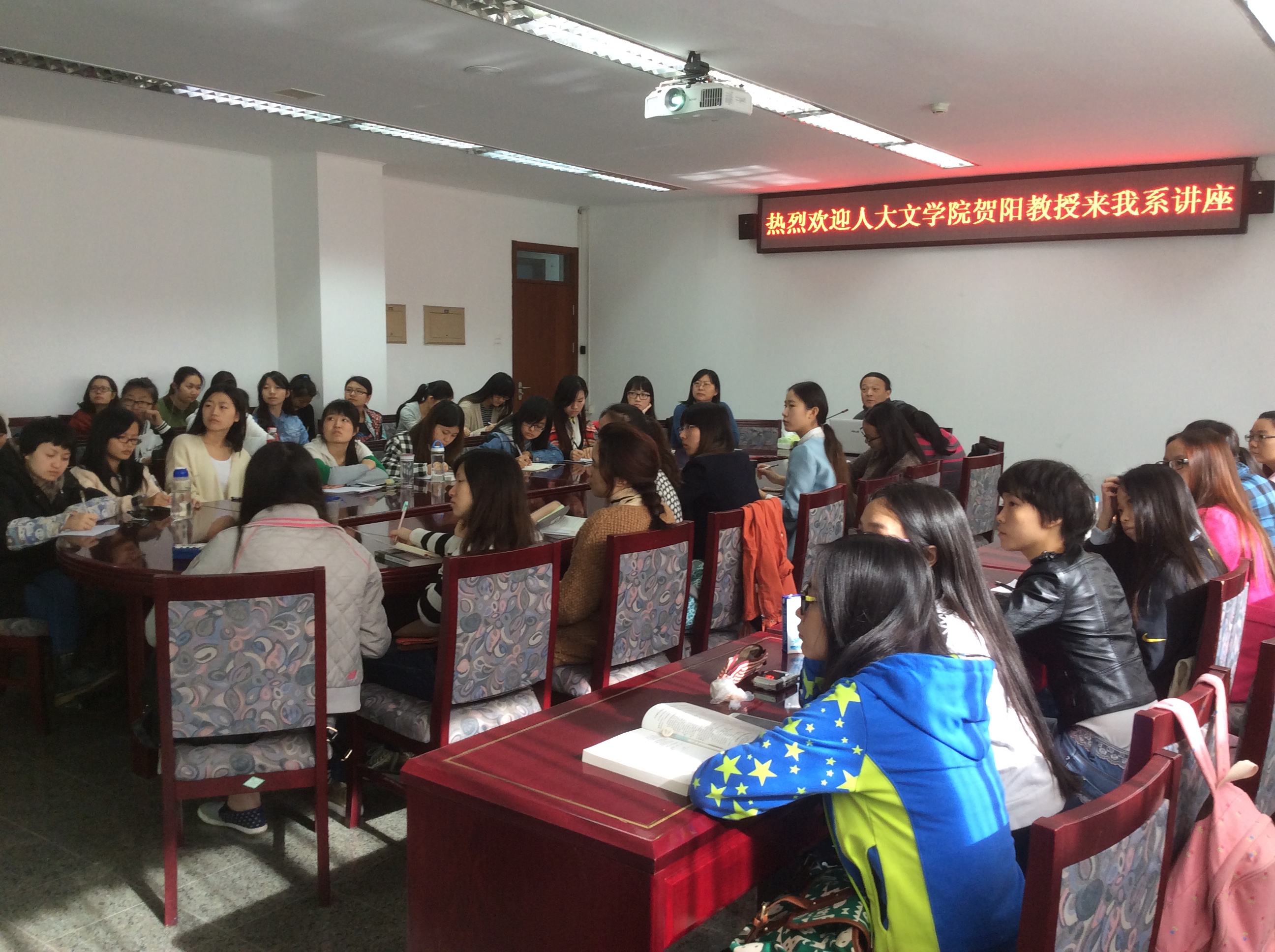 2014年10月16日上午,我系邀请了中国人民大学文学院贺阳教授来校做了一场关于“欧化语法现象和汉语语法