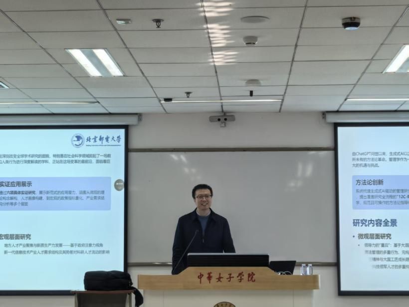 为进一步拓宽师生的学术视野,了解生成式人工智能在管理研究中的最新应用,2025年11月4日下午,由管理学院、科研处和中华女子学院学报联合主办的中华女子学院学术交流季,特邀北京邮电大学发展规划处副处长,兼任北京行为科学学会副会长赵晨教授来校,作题为“生成式人工智能驱动的组织管理研究”的专题讲座,讲座由管理学院高秀娟教授主持。管理学院师生代表积极参加,现场气氛热烈。