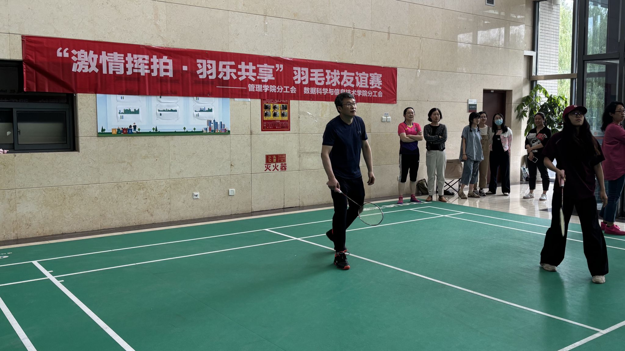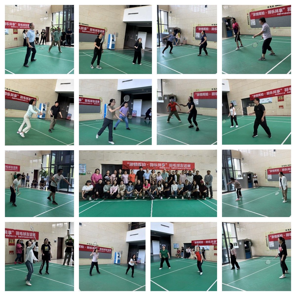 在中国共产党成立104周年之际,为丰富教职工文化生活,展现积极向上的精神风貌,管理学院分工会“庆七一·颂党恩·展风采”系列主题活动于6月16日至17日拉开帷幕。作为系列活动的首场活动,管理学院分工会与数据科学与信息技术学院分工会联合举办的“激情挥拍·羽乐共享”羽毛球友谊赛在教图楼二层羽毛球场激情开赛。