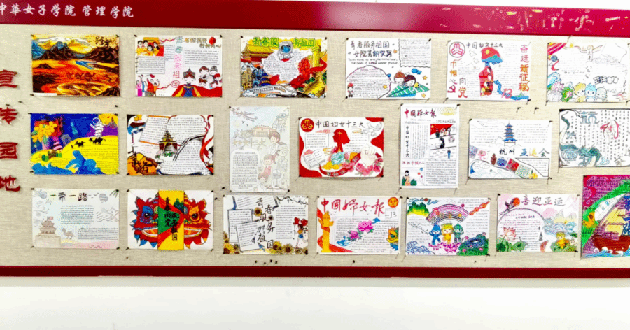 为更好营造校园文化氛围,管理学院以美育载德育,实践探索五育融合的理念,2023年10月以“青春服务祖国”“一带一路”“中国妇女十三大”和“杭州亚运会”等四项内容为主题,开展本年度手抄报活动。
