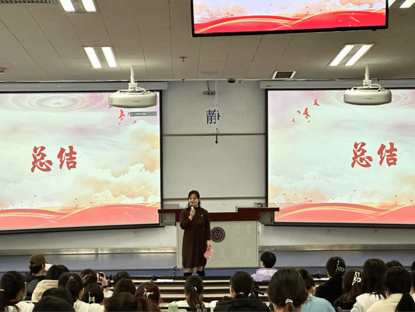 宣讲结束,赵凤利老师对本次微党课开展的意义和收获进行了总结,赵老师指出开展微党课的目标是学思想,强党性,我们要以妇女十三大为契机,进一步学习习近平新时代中国特色社会主义思想,增强党性修养,深刻领悟“两个确立”的决定性意义。用实践检验理论学习成效,学生党支部要树立微党课品牌活动,持续开展主题宣讲,让每个参与的同学都能有成长受教育。希望大家不论是在微党课展示中,更要在全面建设社会主义现代化国家全面推进中华民族伟大复兴进程中做伟大事业的建设者,文明风尚的倡导者,敢于追梦的奋斗者。