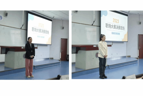 用心育人,以爱执教。此次决赛现场邀请到了管理学院职业生涯与就业指导教研室张才纯老师和胡绍英老师,以及管理学院团总支书记孙可老师,三位教师在点评选手们现场表现的同时也给予她们鼓励和认可,并给出了宝贵的建议,指明了选手们未来发展方向。
