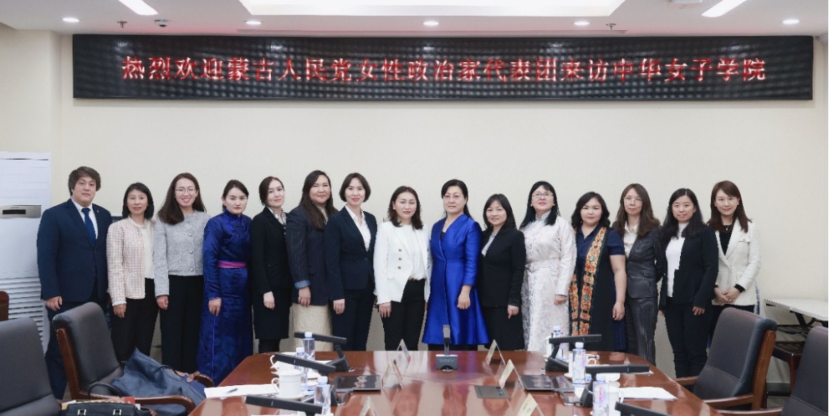 11月21日下午,以蒙古人民党妇联主席、劳动与社会保障部部长、蒙中议会友好小组副主席布勒根图雅为团长的蒙古人民党女性政治家代表团访问中华女子学院。全国妇联联络部副部长杨旸、中华女子学院副院长薛小丽热情接待了代表团一行。