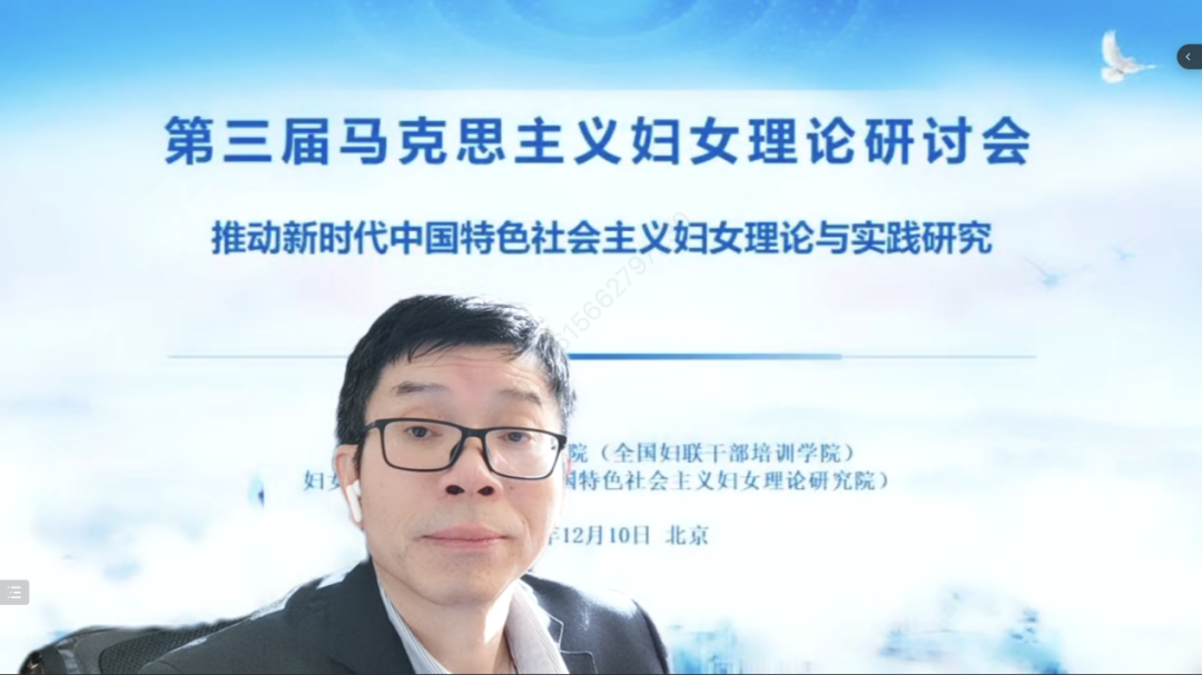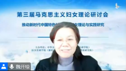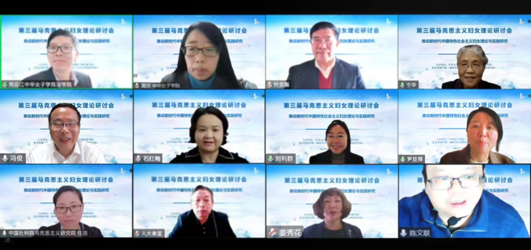 中国共产党自成立以来,始终坚持以马克思主义妇女理论为指导,结合中国实际,开辟中国特色社会主义妇女发展道路,丰富和发展马克思主义妇女理论。党的二十大报告中指出,要开辟马克思主义中国化时代化新境界,谱写马克思主义中国化时代化新篇章。为深入学习贯彻党的二十大精神,深刻领悟在推进中国式现代化进程中统筹推进妇女事业发展的战略意义,更好地推动新时代中国特色社会主义妇女理论研究,中华女子学院(全国妇联干部培训学院)新时代中国特色社会主义妇女理论研究院2022年12月10日通过腾讯会议平台顺利举办了的“第三届马克思主义妇女理论研讨会”线上会。来自中国社会科学院、全国妇联妇女研究所、清华大学、北京大学、中国人民大学、厦门大学、中南大学、中南民族大学、贵州师范大学、贵州财经大学等90余人相聚云端,18位专家学者围绕“推动新时代中国特色社会主义妇女理论与实践研究”主题进行探讨。