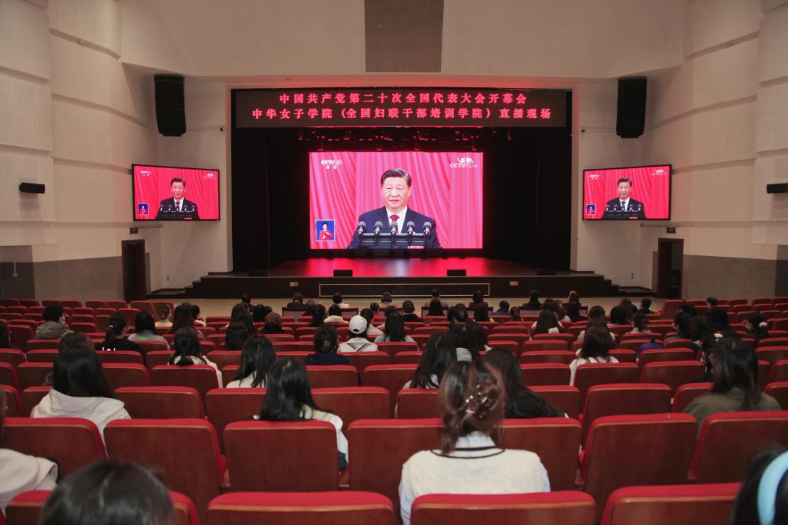 学校组织全体党委委员、在校值班干部、教职工、学生党员、学生干部、学生代表,在学校礼堂和北校区同步观看直播的党的二十大开幕会盛况,各党总支、党支部组织未进校教职工通过电视、网络、广播等其他方式收听收看党的二十大开幕会直播。