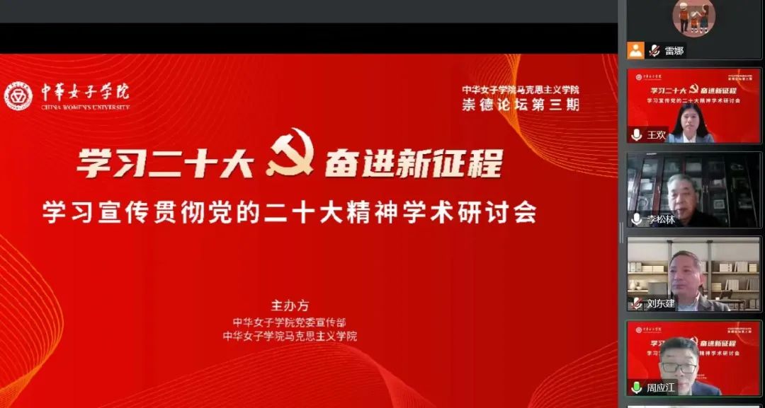 参加研讨会的嘉宾有:清华大学习近平新时代中国特色社会主义思想研究院常务副院长肖贵清教授、首都师范大学马克思主义学院李松林教授、中国人民大学哲学学院院长臧峰宇教授、中国传媒大学马克思主义学院院长刘东建教授、全国妇联妇女儿童博物馆理论部部长李晓哲等。学校党委书记李明舜教授做总结讲话,副校长周应江教授致辞,党委宣传部部长叶水平和马克思主义学院院长王欢教授主持研讨会。