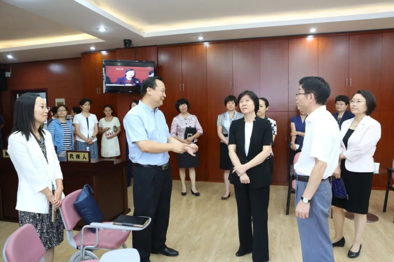 沈跃跃同志参观法学院模拟法庭