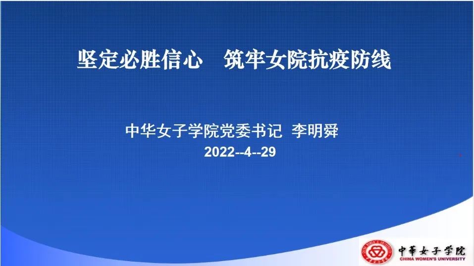 李明舜强调,全体师生要自觉提高政治站位,坚决贯彻落实党中央疫情防控工作决策部署,切实筑牢女院疫情防线;进一步压紧压实责任,严格各项管控措施,全力确保师生健康安全和校园安全稳定;狠抓工作落实,强化监督执纪问责,确保各项工作部署落到实处。