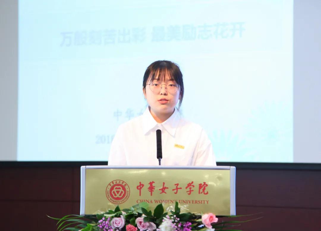 我校学生代表来自四川凉山彝族自治州甘洛县的学生王学颖讲述了自己通过刻苦学习考入中华女子学院的经历,她认为只有学习才是改变命运最好的方法,“自尊、自信、自立、自强”的“四自”精神和女院独特的文化气质使她变得更加自信、勇敢和坚强。