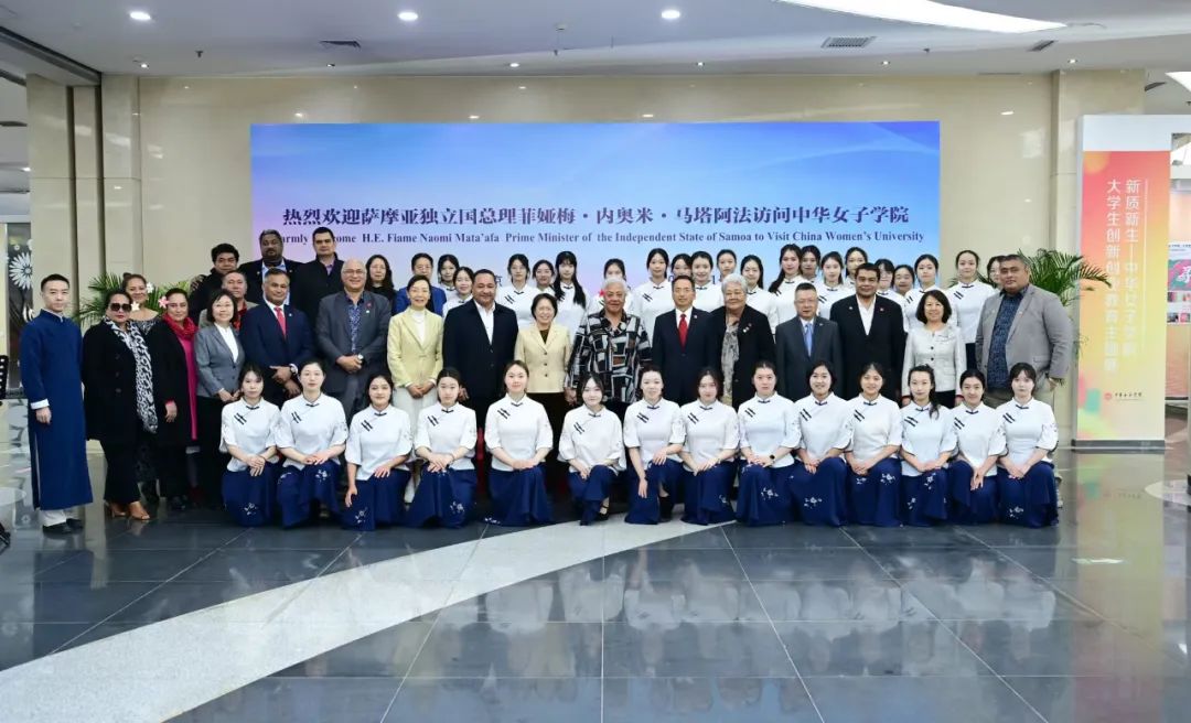 11月27日,全国妇联副主席、书记处第一书记,国务院妇女儿童工作委员会副主任黄晓薇陪同萨摩亚独立国总理菲娅梅·内奥米·马塔阿法参访中华女子学院。菲娅梅参观了校史馆,发表演讲,与师生亲切互动,在欢声笑语中共话两国友谊。
