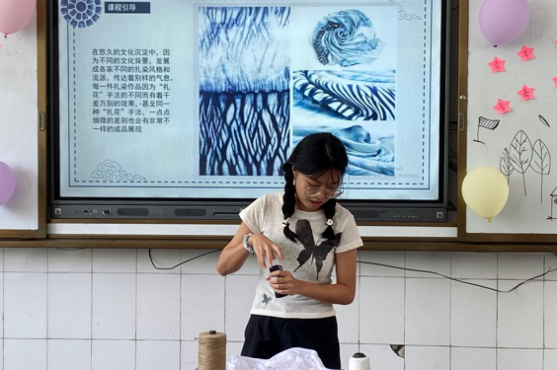 动手来实践,文化植心中。龙潭镇实践团成员带领孩子们学习脸谱知识,了解扎染的历史、图案特点以及制作方法,在亲手制作脸谱、扎染活动中,领略博大精深的中华优秀传统文化,进一步激发文化自信心与民族自豪感。形式多样的美育课堂,使同学们在感受美的同时,激发对美的事物的关注和喜爱,感受中国传统艺术的博大精深,有意识地保护、继承它,并从传统艺术中吸取营养,进行再创造。