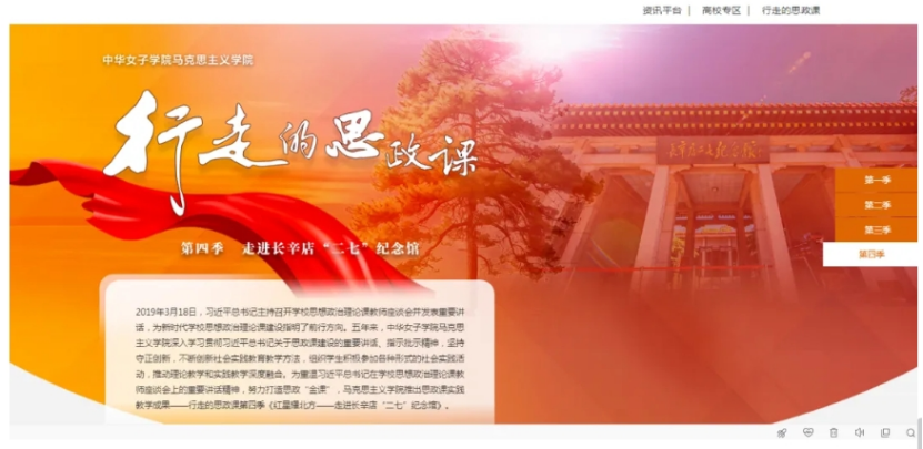 “行走的思政课”系列实践教学模式正式上线两大平台,丰富了思想政治理论课的教学素材,呈现了我校积极发挥女子学院“大思政课”建设独特和丰富的女性资源优势,加强“大思政课”建设和大中小学思想政治教育一体化的优秀教学成果,已经成为在全国有一定影响力的思政课特色品牌。