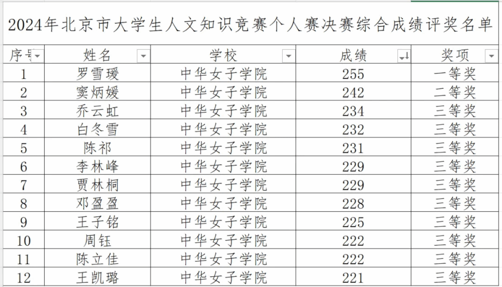 2024年中华女子学院第十四届人文知识竞赛获奖名单
