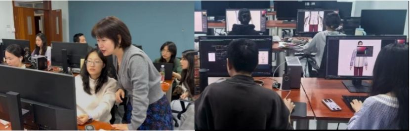 设计团队在寒假期间争分夺秒,深入调研,精心打磨设计构思并依托学院‌虚拟仿真实验室,创新运用‌AI辅助技术‌完成创意图稿。团队联合国际赛事运动装经验丰富的印染及制造企业制做设计成衣,保障了创意设计的精准呈现。从奥运会的国际视野到中国优秀传统文化和体育精神,从设计的精神内涵到功能性细节,作品既融入冰雪运动的速度美学,又通过非遗元素传递文化自信,充分契合“展现新时代中国风貌”的征集要求。