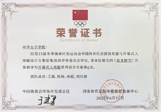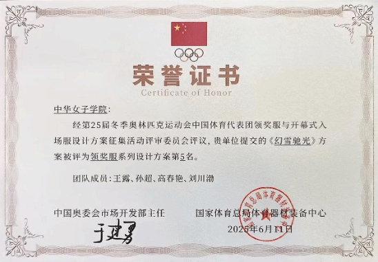 第25届冬季奥林匹克运动会将于2026年2月在意大利米兰和科尔蒂纳丹佩佐盛大举办。在由中国奥林匹克委员会主办的“第25届冬季奥林匹克运动会中国体育代表团领奖服与开幕式入场服设计方案征集活动”中,中华女子学院文化传播与艺术学院设计团队脱颖而出,凭借出色的创意与专业表现,荣获‌开幕式入场服设计第6名、领奖服设计第5名‌的佳绩!此次活动吸引了清华大学、中央美术学院等顶尖院校及知名企业参与,共收到75套入围作品,我院设计成果跻身全国前十,充分展现了团队的专业实力与创新精神。