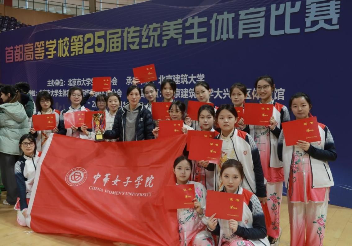 11月16日,首都高校第25届传统养生体育比赛在北京建筑大学圆满落幕。北街比赛吸引了来自首都35所高校,407名运动员同台竞争。中华女子学院武术队获得总分121分的好成绩,八个大项多点开花,斩获多项佳绩,续写了我校在该赛事中的荣耀篇章。
