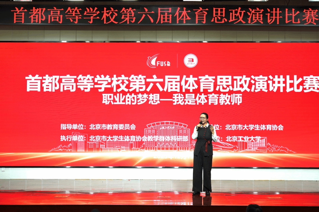 首都高等学校体育思政演讲比赛“职业梦想——我是体育教师”由北京市教育委员会指导、北京市大学生体育协会主办,是提高普通高等学校体育教师专业表达能力、思政育人能力,树立高素质体育教师典型,发挥优秀体育教师模范带头作用,搭建体育教师成长平台的重要举措。经过在京高校9个分部的层层选拔,最终仅有24名教师取得了参加决赛的资格。本届比赛全程进行网络直播,集中展示首都高校体育教师的风采和赛事盛况