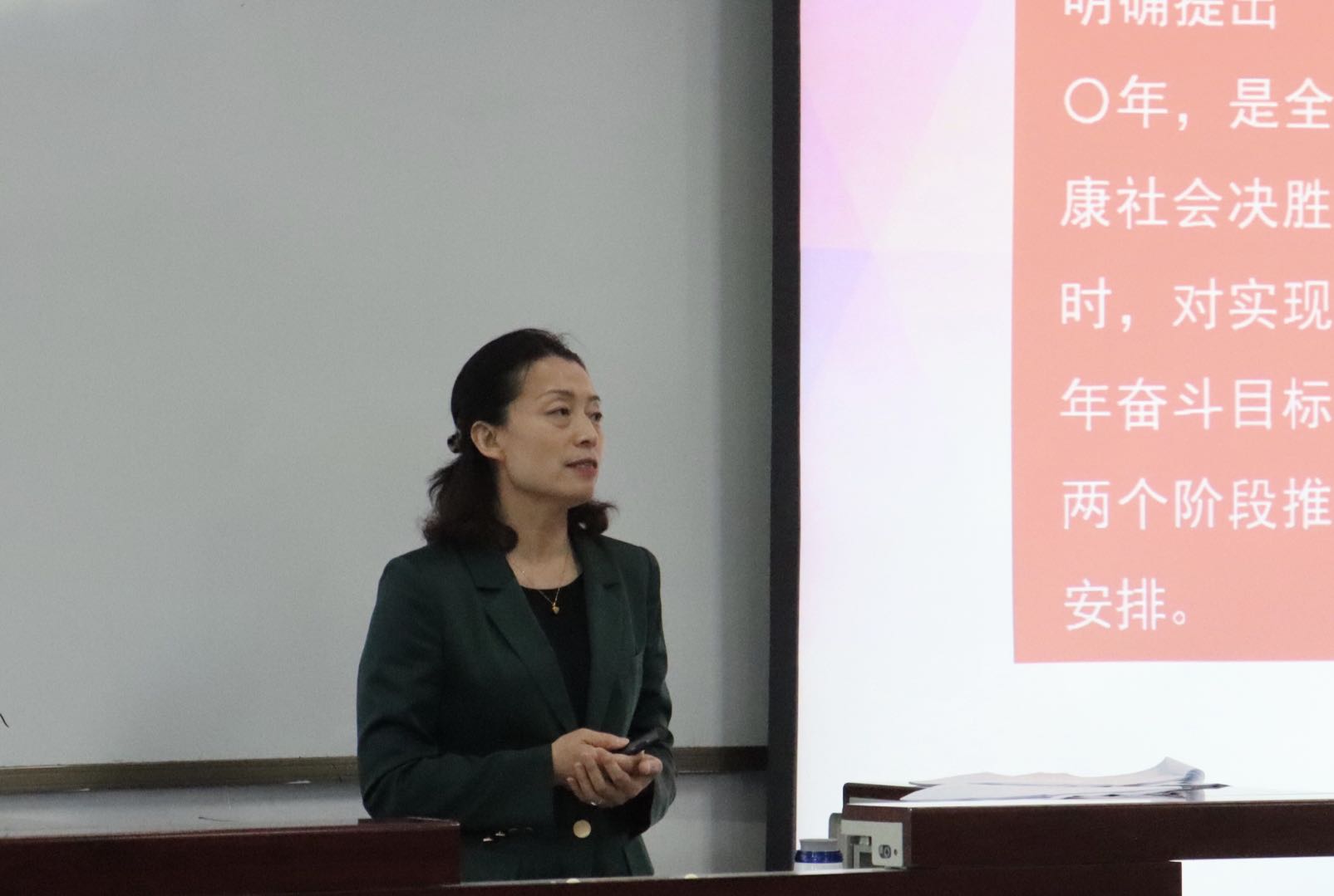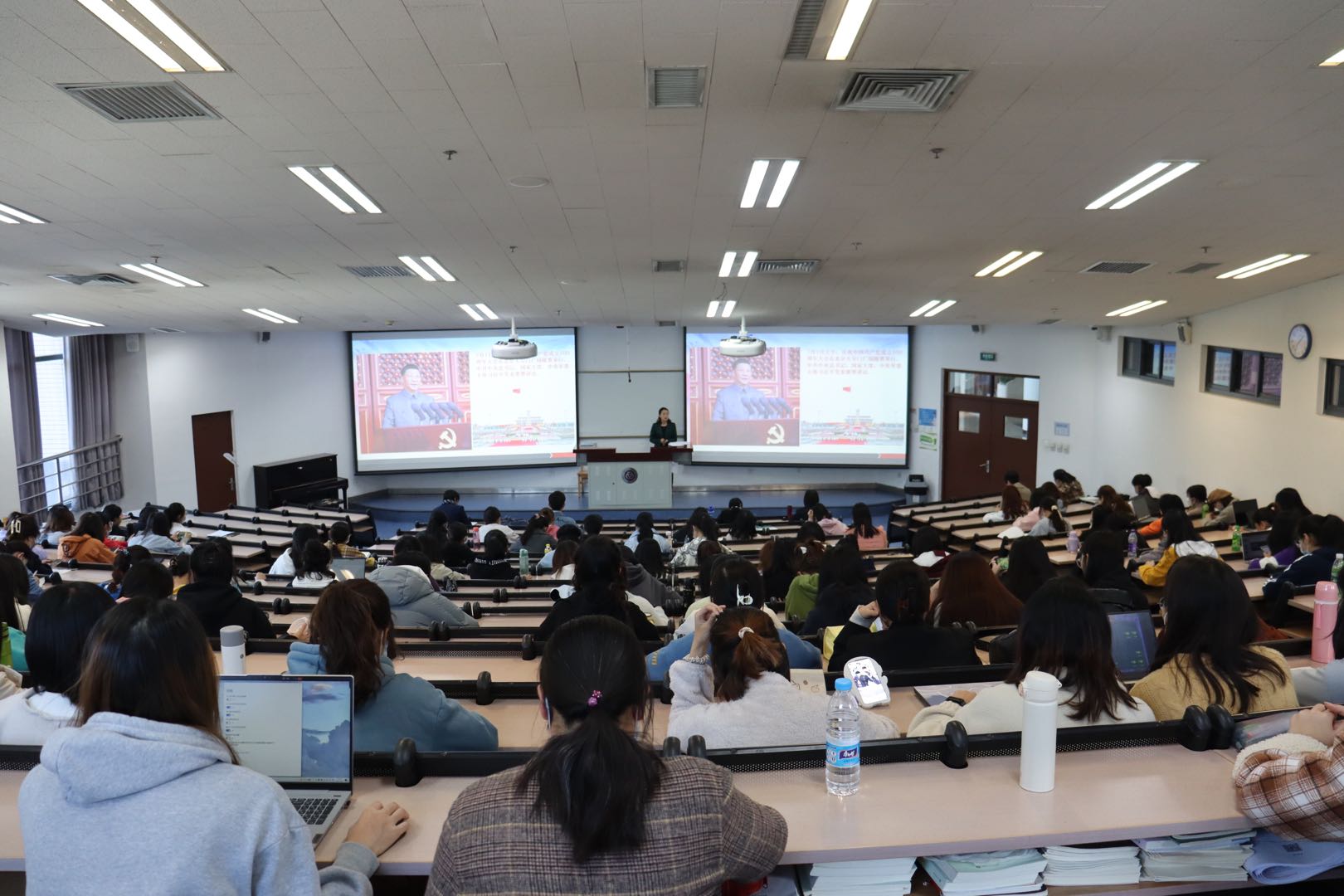 赵浩从“全面认识中国共产党百年光辉历程和伟大成就,坚定做时代新人的理想信念”“弘扬伟大建党精神,坚定听党话、跟党走的决心”“以史为鉴、开创未来,增强在新征程上全面建成社会主义现代化强国的信心”以及“传承百年大党青春气质,担当新时代青年历史使命”四个方面,系统梳理习近平总书记“七一”重要讲话精神,回顾了中国共产党百年奋斗的光辉历程,特别是百年来中国共产党团结带领全国人民创造的伟大成就,深刻阐释了伟大建党精神的深刻内涵和时代价值。同时结合女院特色与学生工作,勉励女院学子从百年党史汲取力量,肩负时代的重任,要增强做中国人的志气、骨气、底气,不负时代,不负韶华,不负党和人民的殷切期望,努力成长为堪当民族复兴大任的时代新人。