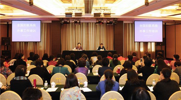 2014年12月10-11日,全国妇联外事工作培训会在北京举行。全国妇联机关部门及直属单位、31个省区市妇联分管外事工作的领导和工作人员出席了外事工作培训会。全国妇联副主席、书记处书记孟晓驷出席培训开幕式并讲话。她要求各级妇联和全国妇联机关各部门、各直属单位认真学习党的十八届三中、四中全会精神和习近平同志关于外交外事工作的重要讲话,认真学习和贯彻落实中央外事工作会议新精神,进一步围绕中心、服务大局,充分发挥妇女公共外交和民间外交的优势和潜力,推动妇联外事工作在新形势下创新发展,为维护世界和平,促进妇女共同发展做出新的贡献。