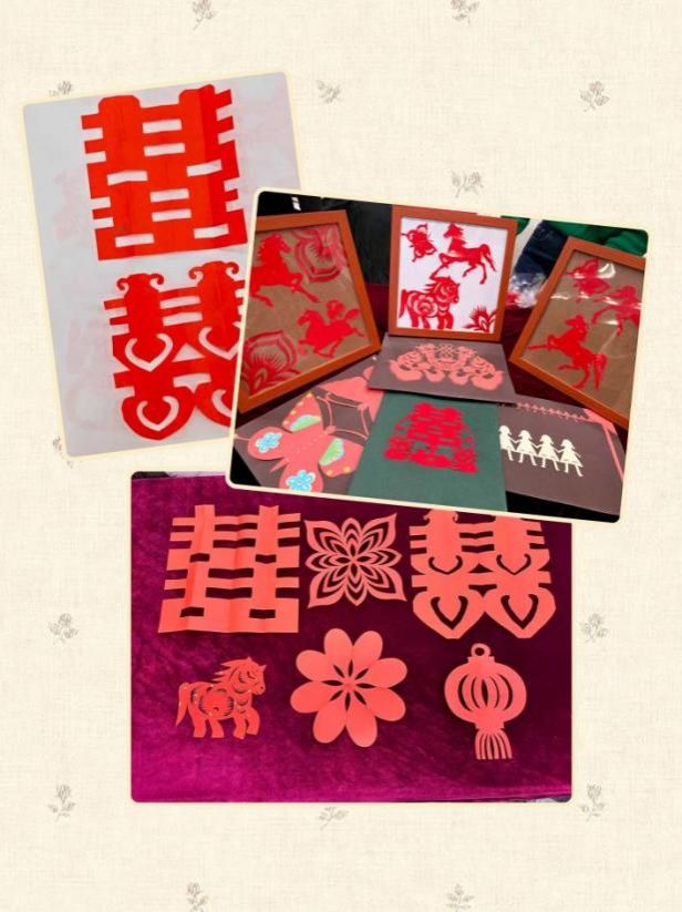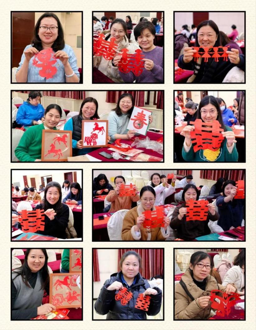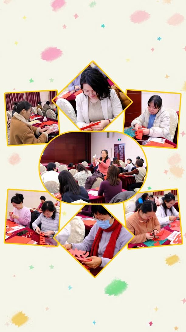 在“剪上生花,花开吉祥”剪纸艺术体验活动中,学校工会兼职副主席、手工协会负责人张小红老师向大家介绍了剪纸艺术的历史渊源、文化寓意和基本技法,并进行现场示范讲解。从折叠构图到细致裁剪,大家认真学习、积极动手,逐步掌握剪纸的基本技巧。在轻松愉快的氛围中,一张张红纸在指尖翻飞,逐渐变成精致生动的剪纸作品。活动现场既有“双喜”“小马”“窗花”等传统图案,也有老师们发挥创意进行的自由创作,造型生动。经过一个多小时的精心创作,一幅幅主题鲜明、寓意美好的剪纸作品跃然纸上。参加活动的老师们纷纷表示:“平时工作比较忙,很少有机会静下心来体验这样的传统技艺。今天的活动不仅放松了心情,也感受到了传统非遗文化的魅力,还收获了自己亲手完成的作品,特别有成就感”。