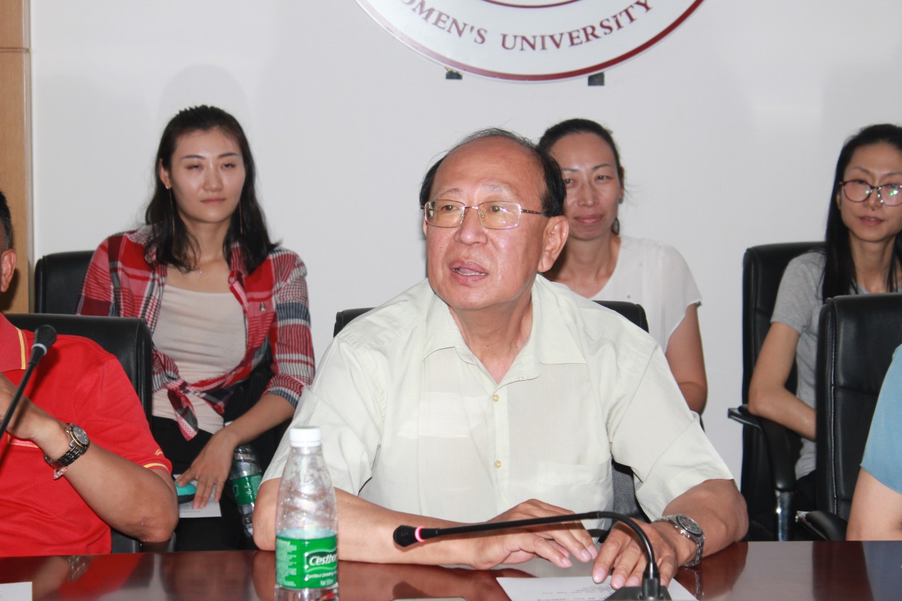 中华女子学院王练副校长代表女子体育研究会理事长单位对参会代表表示欢迎,她肯定了女子体育研究会在开展高校女大学生体育教育教学研究,促进女大学生积极参与体育锻炼和体育赛事,提高女大学生体质,倡导积极健康的校园体育文化方面做了大量工作,取得良好成绩,对女子体育研究会所取得的成绩表示祝贺,对各高校一直以来对女子体育研究会工作、对中华女子学院的支持表示衷心的感谢。祝愿北京高校女子体育研究会在北京市大学生体育协会的领导下,在各高校的大力配合下,在新一届研究会领导班子和全体会员的共同努力下取得更大的成绩。中华女子学院作为理事长单位将一如既往地积极参与各项活动,提供必要的支持和保障。