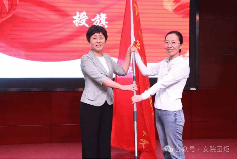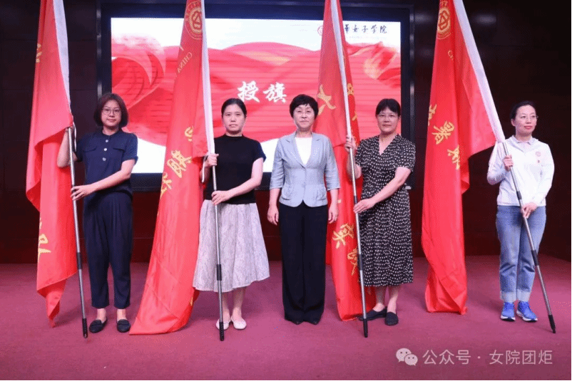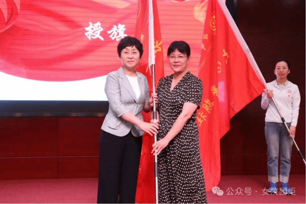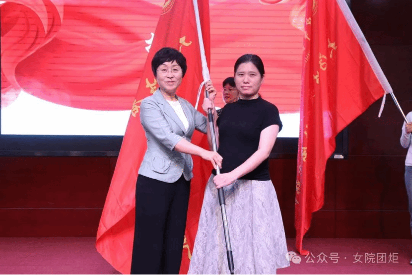 刘亚玫代表学校党委向各个暑期实践团授旗,勉励师生时刻牢记习近平总书记的殷殷嘱托,响应时代召唤,坚持学以致用,带着责任感、使命感投入到关爱妇女儿童社会实践中去,把青春奉献在党和国家最需要的地方,用实际行动诠释“请党放心,强国有我”的青春誓言。