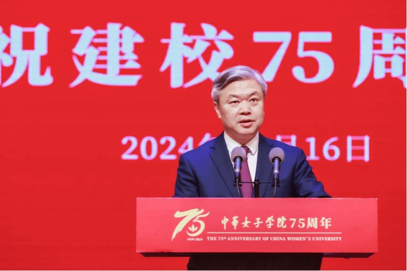 中国传媒大学党委书记廖祥忠代表兄弟院校致辞,对中华女子学院建校75周年表示热烈祝贺。他在致辞中表示,学校始终与党同心、与时代同频、与妇女事业同行,展现了新中国女性“巾帼不让须眉”的豪情壮志和追求卓越、心系家国、服务社会的奋斗精神,在探索女性成长成才规律、践行男女平等、服务妇女全面发展中作出了不可磨灭的贡献。两校有着共同的红色基因、共同的价值追求、共同的使命责任,为推动全球女性教育及构建人类命运共同体作出了积极贡献。他期盼中华女子学院在新征程里,不断汇聚学科优势和人才优势,谱写建设“一流女子大学和国家级干部培训学院”的新篇章,开启助力妇女事业高质量发展的新纪元。