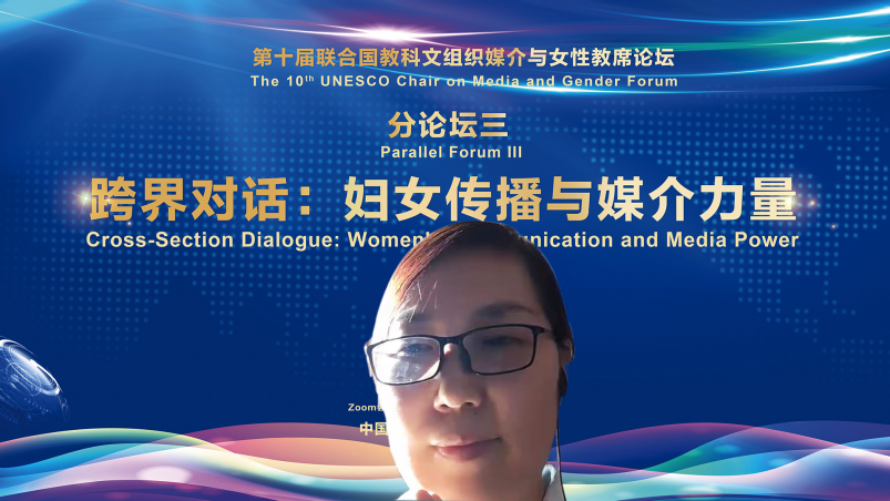 第三平行论坛由中华女子学院交流合作处处长张琦主持。她对本次论坛进行回顾与总结,并期待未来拥有更多跨界交流互动的机会,汇聚跨界智识,发挥跨界的力量,更好为促进性别平等在媒体行业的实现、妇女国际传播事业的发展与人类命运共同体的构建贡献力量。