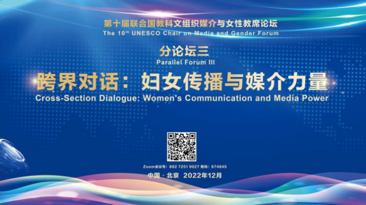 2022年12月28日下午,为深入探讨妇女国际传播对促进女性发展和社会进步、文明互鉴和人类命运共同体构建的作用,“跨界:妇女传播与媒介力量”——第十届联合国教科文组织媒介与女性教席论坛第三平行论坛上,来自学界、业界的专家们就如何发挥传播与媒介在妇女事业中更大作用,更好贯彻男女平等国策,实现性别平等展开了跨界对话。